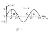 解:(1)振幅是質(zhì)點偏離平衡位置的最大位移,波長是兩個相鄰的峰峰或谷谷之間的距離,所以振幅A=5cm,波長=20m。