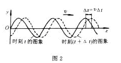 波的圖象表示介質(zhì)中各質(zhì)點在某一時刻(同一時刻)偏離平衡位置的位移的空間分布情況。在不同時刻質(zhì)點振動的位移不同,波形也隨之改變,不同時刻的波形曲線是不同的。圖2表示經(jīng)過叢時間后的波的形狀和各質(zhì)點的位移。