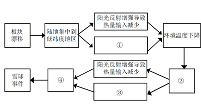 3.根據(jù)材料1,在答題卡相應(yīng)的題號(hào)位置填補(bǔ)“雪球事件”形成的因果鏈?zhǔn)疽鈭D的缺項(xiàng),其中①③均不超過(guò)15字,②④均不超過(guò)10字。